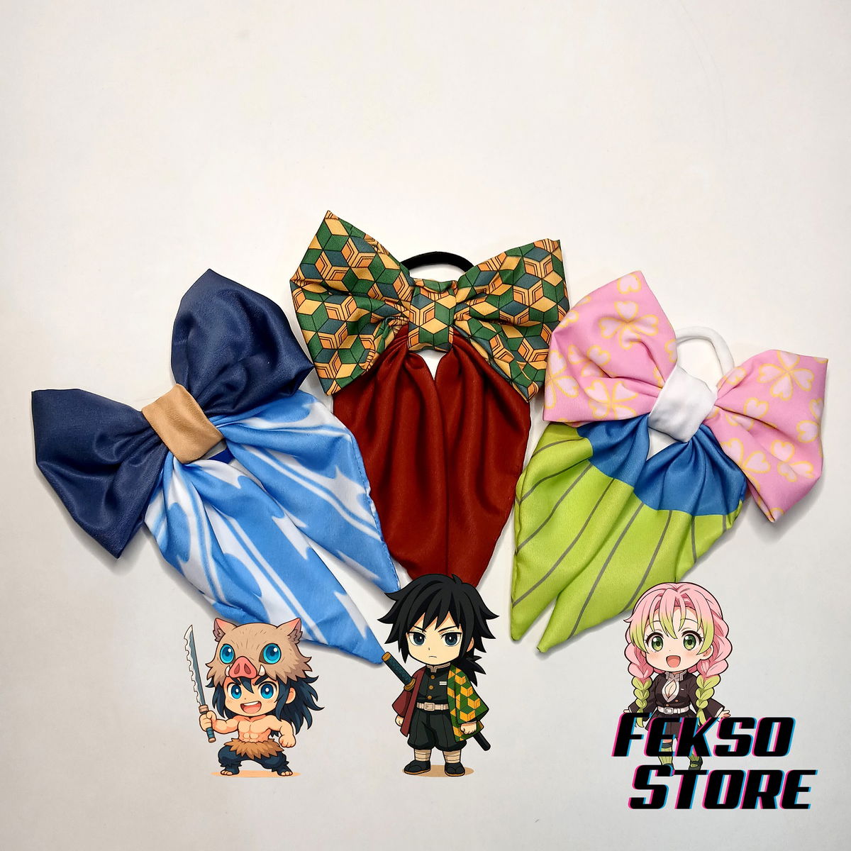 Set de 3 colitas con diseño de Demon Slayer